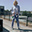A photo of Dielle, a transfeminine person, standing with her walking sticks